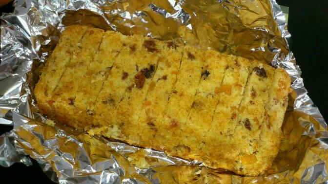 ①ドライフルーツを 沸騰した湯に30秒泳がせる。