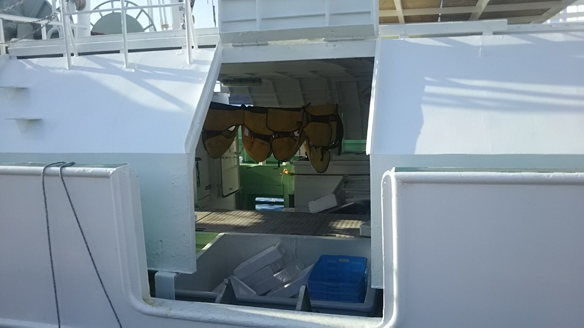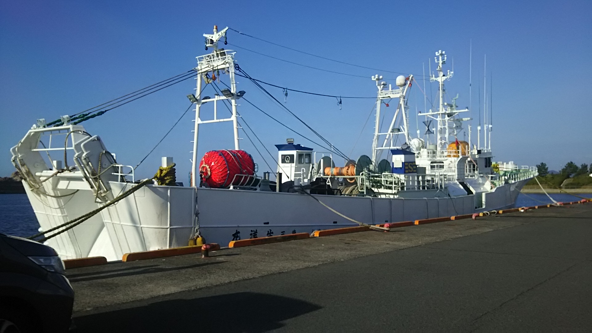 波止場のほうで、船がいっぱい停泊してる。
